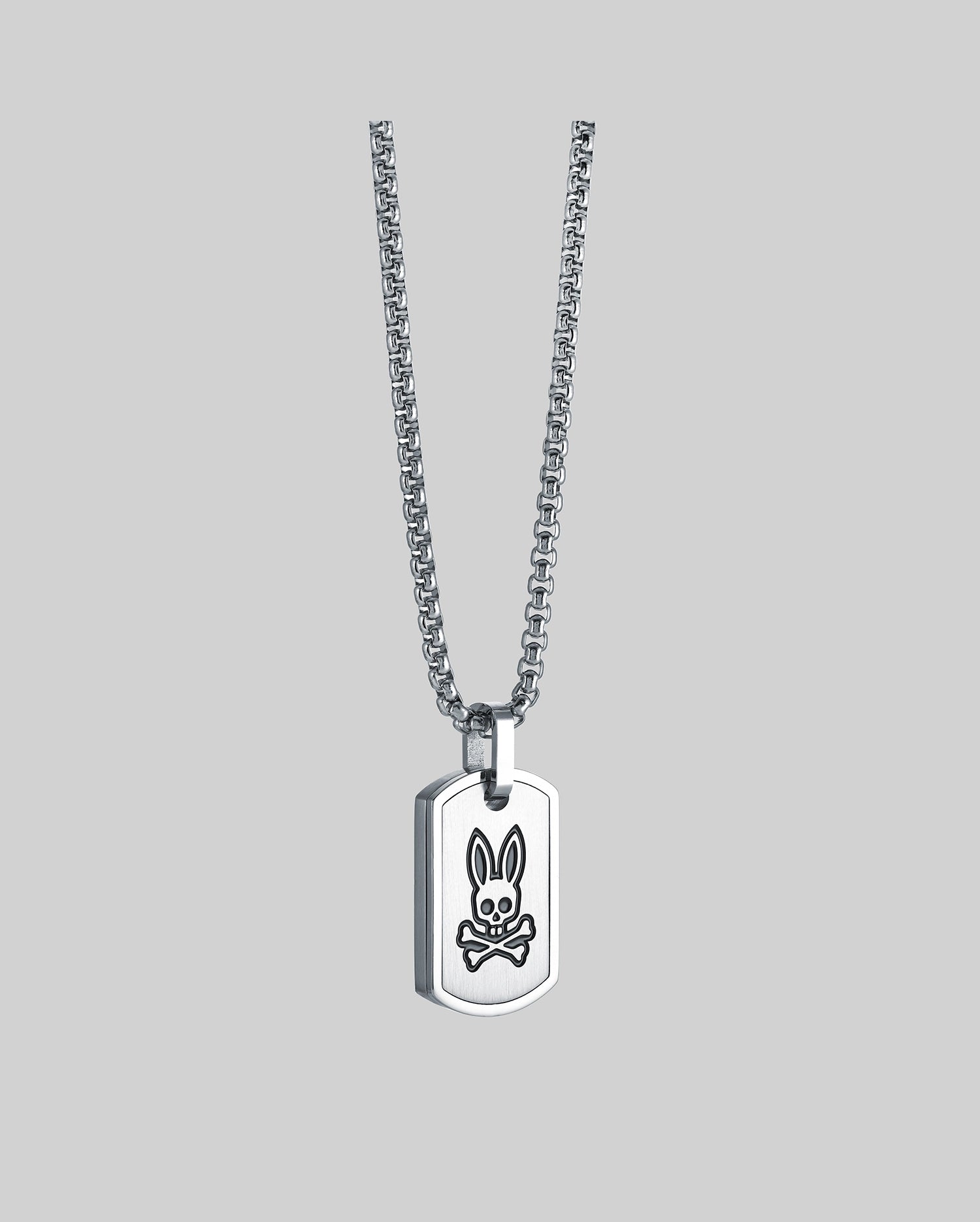 Less so a dog tag. moreso a Bunny tag. With a durable steel cable chain and a lobster claw clasp to keep things in place. our Army Tag Necklace is rugged and stylish.